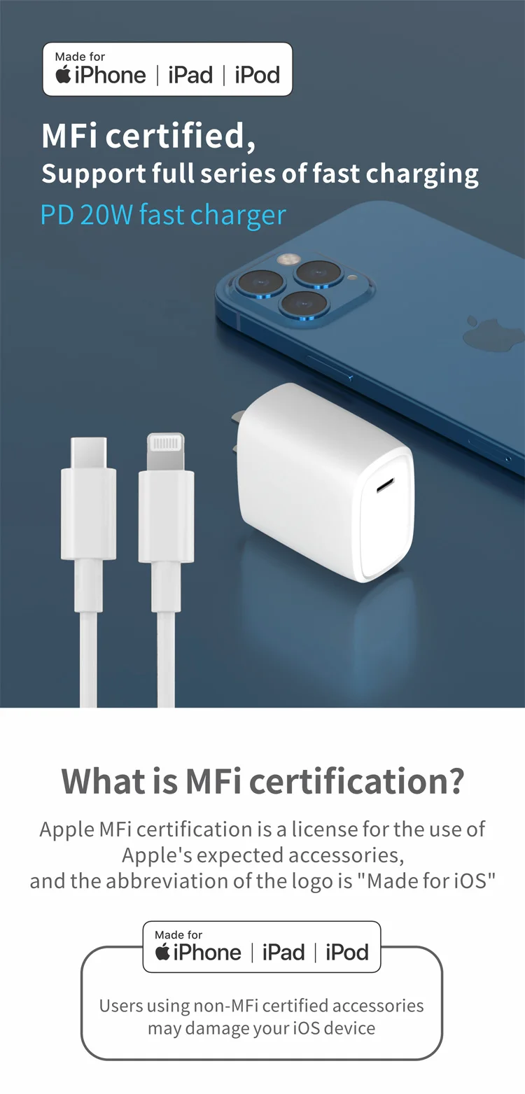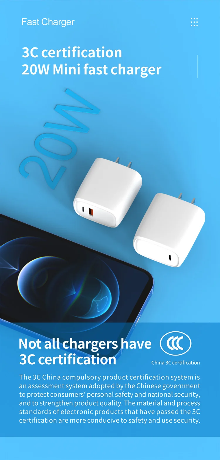 20w Pd fast wall charger original for apple USB A Type C dual ports with lightning cable for iPhone charger